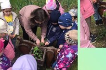 В детском саду продолжаются работы по высадке деревьев и кустарников в Сквере Памяти. Педагоги высадили 8 саженцев сливы, ирги, 3 туи.