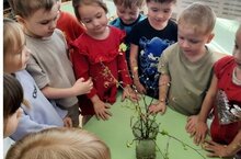 Сегодня "Умные совята" наблюдали за веточками липы, берёзы. Неделю назад мы принесли веточки в группу и поставили в воду. На протяжении недели дкти наблюдали, как почки увеличиваются и появляются первые листочки. Дети сделали вывод: для того, чтобы из почек распустились листья,нужны тепло, вода, свет.Бүген "Акыллы ябалаклар" юкә, каен ботакларын күзәтте. Моннан бер атна элек без ботакларны группага алып килдек һәм суга куйдык. Атна дәвамында дкти бөреләрнең артканын һәм беренче яфракларның барлыкка килүен күзәтте. Балалар бөреләрдән яфрак таралсын өчен җылы, су, яктылык кирәк дигән нәтиҗә ясадылар.