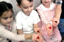 Сегодня в детском саду - день дружбы и любви! Детский сад пестрит от ярких красных валентинок на груди детй и сотрудников. И конечно, главный праздник состоялся в музыкальном зале, где ребята пели песни о дружбе, читали стихи и смеялись над веселыми проделками Мышонка. А кот Леопольд устраивал веселые конкурсы и говорил " Ребята! Давайте жить дружно!"