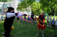 29 мая в детском саду прошел праздник, посвященный Дню защиты детей. Дети соревновались с Лисой Алисой и Котом Базилио в силе, ловкости, смекалке, а с Петрушкой и Карлсоном веселились и танцевали.