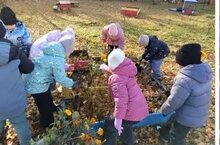 Воспитанники группы "Пчёлки" делали сегодня ДОБРОЕ ДЕЛО. Ребята трудились на своей клумбе. Собрали семена цветов и убрали растения.