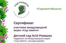Безнең балалар бакчасы Бөек Ватан сугышында һәлак булган сугышчылар һәм тыл хезмәтчәннәре истәлегенә агачлар утырту буенча «Хәтер бакчасы» халыкара акциясендә актив катнашты. -