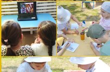 Сделали из бумаги фотоаппараты и запечатлели насекомых и цветы нашего участка. Лето- прекрасное время года. Жалко, что оно так быстро заканчивается.Җәй көне табигать нинди матур, яшеллек күзләрне иркәли. Күпме төрле бөҗәкләр бар. Җәй турында истәлек калдыру өчен, 5 һәм 9 төркем балалары безнең участокның "кунакларын" фотога төшерергә карар кылдылар. Кәгазьдән фотоаппаратлар ясадык һәм бөҗәкләрне һәм безнең участокның чәчәкләрен ябыштырдык. Җәй - елның гүзәл вакыты. Кызганыч, ул шулай тиз бетә. -