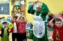 "Акыллы савитлар бүген көз үзе кунакка килде. Балалар аңа көзге бизәлештә агач ташландык материалдан бүләк итеп әзерләгәннәр. Әкияти көзге төрле урман барлыкка килде!