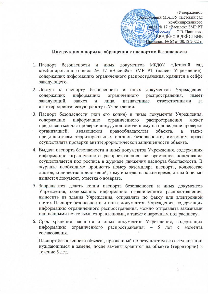 Приказ "О мерах по защите информации при хранении паспорта безопасности и других документов, содержащих информацию ограниченного распространения"