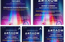 Балалар бакчасында тәрбияләнүчеләр"чагылыш" халыкара сәнгать фестиваль-конкурсында "Нәфис сүз" номинациясендә катнаштылар һәм 2 һәм 3 дәрәҗә дипломнар белән бүләкләнделәр. Балаларны яхшы әзерләгәннәре өчен педагоглар А.В. Хәйретдиновка һәм В. В. Виноградовка рәхмәт белдерәбез.
