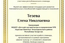 Педагоги детского сада приняли участие в Республиканском семинаре, организованного в рамках программы Диалог культур:от узнавания к уважению по теме -"Музей как эффективная площадка для развития познавательных способностей подрастающего поколения"Балалар бакчасы педагоглары мәдәниятләр диалогы программасы кысаларында оештырылган"Музей-үсеп килүче буынның танып-белү сәләтен үстерү өчен нәтиҗәле мәйданчык буларак" дигән тема буенча үткәрелгән республика семинарында катнаштылар"