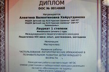 Воспитатель Хайрутдинова А.В. приняла участие во Всероссийской педагогической конференции «Перспективные технологии и методы в практике современного образования» в Международном педагогическом конкурсе Педагогика XXI века: опыт, достижения, методика
