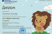 Воспитанники детского сада приняли участие во Всероссийском конкурсе "Эти забавные животные" и заняли 1 место.Поздравляем!!!!!