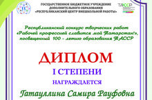 Наши воспитатели являются победителями 1 и 2 степени в Республиканском конкурсе творческих работ "Рабочей профессией славится мой Татарстан!",посвященное 100-летию образования ТАССР