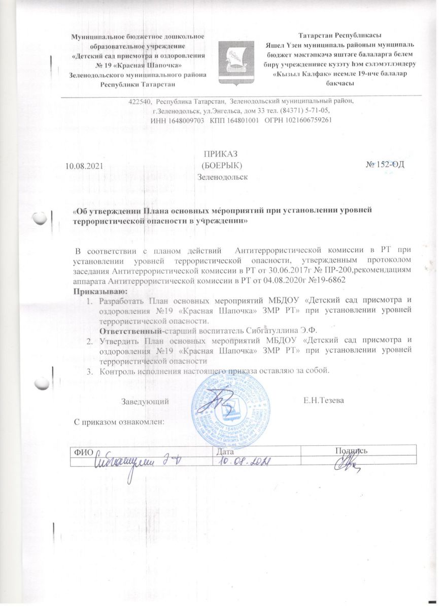 Приказ Об утверждении Плана мероприятий при установлении уровней террористической опасности в учреждении(1).jpeg