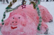Детский сад принимает участие в муниципальном конкурсе "Новогоднее оформление учреждений". Педагоги детского сада построили композицию из снега "Символ 2019года".