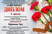 Ефимову Еву с победой в Республиканском конкурсе творческих работ "Салют Победы".