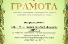 | Короткое название: | МБДОУ "Детский сад общеразвивающего вида № 20 "Ёлочка" ЗМР РТ" |