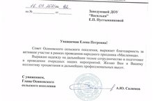 Глава Осиновского сельского поселения, Салимов Альберт Юнусович, выразил благодарность коллективу МБДОУ №24 "Васильки" за активное участие в рамках проведения народного праздника "Масленица". Наши старания не остаются не замеченными.