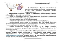 Памятка для родителей от Министерства труда, занятости и социальной защиты Республики Татарстан "О ежемесячных выплатах семьям, имеющих детей".