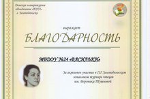 По итогам заочного отбора, 24 марта наши воспитанники приняли участие в очном турнире чтецов им. Вероники Тушновой "Галактика любви- 2019". Всем вручили сертификаты фестиваля и книжные издания. За активное участие выразили благодарность детскому саду.