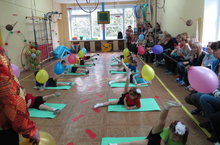 В гостях у детей Веснушка и Кнопочка, с песнями, играми, с танцами.