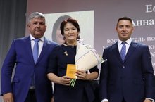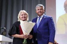 На Августовском совещании работников образования и науки на тему "Векторы развития системы образования ЗМР в контексте общенациональных ориентиров: повышение статуса педагога и наставника, воспитательная работа" в г. Зеленодольск , 23.08.2023 г., глава района Афанасьев Михаил Павлович, наградил воспитателя по обучению татарскому языку Ефремову Анну Николаевну, нагрудным знаком "За сохранение и развитие языков, культур и традиций"