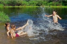 От покупки надувного матраца для плавания на реке лучше отказаться. Быстрое течение реки может быстро унести маленького пловца. К тому же, острые камни и концы торчащих веток могут порвать матрац. Желательно приобрести для ребенка специальные тапочки для купания, особенно если у вас запланирован поход на речку с каменистым дном.