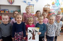 С детьми 5 группы провели беседу о перелетных птицах. Изготовили коллективную работу « Грачи прилетели»