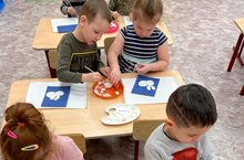С наступлением зимы на ветках деревьев и кустарников можно увидеть красивых птиц с красной грудкой - снегирей. Их часто изображают на новогодних открытках и плакатах, по праву считая таким же символом праздника, как и ёлка, Дед Мороз или снеговик. В средней группе 6 прошло занятие « Снегири на ветке». Воспитатели Якимова Е. В. , Давлетшина А.А. познакомили детей с нетрадиционной техникой рисования- ладошками. Такая методика рисования детям очень понравилась!