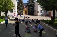 Дошкольники проявили творчество и фантазию, на асфальте площадки детского сада «светило солнышко» и «расцвели цветы»