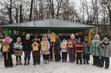 Юные помошники с удовольствием принимали участие в процессе и с интересом наблюдали как их "Чудо домики" занимают места на деревьях на территории нашего детского сада.