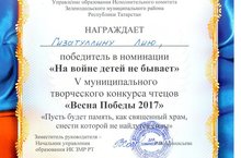 От всей души поздравляем Гизатуллину Лию - победительницу в номинации "На войне детей не бывает" V муниципального творческого конкурса чтецов "Весна Победы 2017"