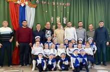 Ежегодно, в предверии праздника Защитников Отечества, воспитанники старшей и подготовительной групп принимают участие в смотре строя и песни.