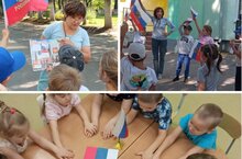 Ел саен безнең балалар бакчасында 22 августта билгеләп үтелә торган Россия Федерациясе Дәүләт флагы көненә багышланган чаралар уза. Бәйрәм алдыннан балалар белән «минем илем флагы», «Ак, зәңгәр, кызыл» әңгәмәләре үткәрелде, дәүләтебез символикасы турында китаплар укылды. Балаларны РФ дәүләт символикасына тарту-мәктәпкәчә яшьтәге балаларны патриотик тәрбияләүдә өстенлекле бурычларның берсе. Патриотик хисләр бала тугач, аның бөтен тормышы барышында формалаша. Бу-гаиләгә, балалар бакчасына, туган станицага, туган табигатькә, ватандашларга мәхәббәт хисе, үзеңне үз илеңнең символикага – флагка, гимнга, гербка хөрмәт белән караган гражданины итеп тою.