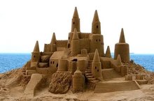 Воспитатели вместе с детьми, выходя на прогулку, выносят материал для выполнения построек из песка: пластмассовые ведёрки, совки, лопатки, формочки, а также легко моющиеся игрушки для обыгрывания: машины, пластмассовые образные игрушки (куклы, фигурки зверей). Все постройки, сделанные детьми, получаются яркими и привлекательными.