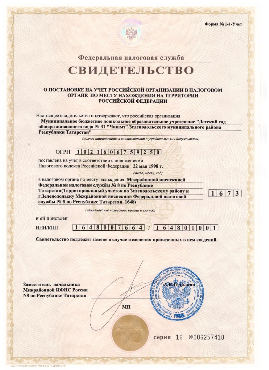 Короткое название: МБДОУ "Детский сад общеразвивающего вида №31 "Чишмэ" ЗМР РТ