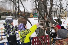 В "Синичкин день" дети группы №6 разложили корм для птиц по кормушкам детского сада . Педагоги постоянно привлекают внимание детей и родителей к проблеме охраны и бережного отношения к зимующим птицам./ "Синичкин көне" ндә 6 нчы төркем балалары кошлар өчен балалар бакчасы җимлекләре буенча азык тараттылар . Педагоглар балаларның һәм ата-аналарның игътибарын кышлаучы кошларга сак караш һәм сакчыл караш проблемасына даими рәвештә җәлеп итә.