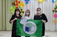 Сегодня наш детский сад награжден заслуженным зеленом флагом за плодотворную работу в Международной программа "Эко-школы-/Зеленый флаг""//Бүген безнең балалар бакчасы "Эко-мәктәп-/Яшел флаг" халыкара программасында нәтиҗәле хезмәте өчен лаеклы яшел флаг белән бүләкләнде"