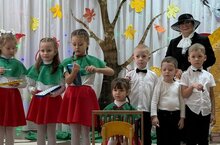 Первым сегодня было осеннее развлечение для самых маленьких деток, которые только в августе пришли в детский сад. Воспитатель Красиенко Е. В. смогла организовать всех деток на танец, на песню. Для них еще все в новинку, дети с удовольствием рассматривали осеннее убранство зала, собирали грибы и танцевали с лесным Мишкой. -