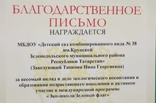 Благодарственное письмо «Эко-школа| Зеленый флаг» 23.05.2025