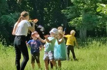 Все дети обожают лето, ведь это самое яркое и веселое время года. Для ребят это пора веселых игр, радость и море положительных эмоций. А главное, летом можно найти массу увлекательных занятий! И этому замечательному времени года была посвящена игровая программа с участием героев детских мультиков, которую подготовили семья воспитанницы Варвары Лобовой. Дети отлично провели время: играли в различные подвижные игры, танцевали, ловили мыльные пузыри, угощались сладостями. Ну а сюрпризом для детей стал сказочный мишка, из волшебного леса. Ребята поиграли со сказочным персонажем и устроили праздничную дискотеку.