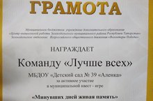 Команда детского сада "Лучше всех приняла активное участие в квест-игре "Минувших дней живая память"