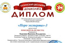 Компенсацияләү юнәлешендәге төркем тәрбиячесе В.И. Бурунина "Казанский школьник и дошколята" Бөтенроссия педагогик журналының "Эксперт каләме-3 "Бөтенроссия конкурсында" тәҗрибә уртаклашам "номинациясендә призер булды. Котлыйбыз!!!