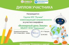5 нче номерлы "Лучики" компенсацияләү юнәлешендә тәрбияләнүчеләр Җир көненә багышланган "Робоборик" белем бирү платформасында Бөтенроссия марафонында катнаштылар. Балаларның коллектив эше диплом белән билгеләнде.