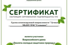 Экологлар - яшь табигать сакчылары" дигән Бөтенроссия экологик дәрес 5нче "Лучики"төркемендә узды. Сертификатлар Белән Билгеләп Үтелде.