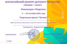 "Мәктәпкәчә белем бирүнең федераль дәүләт стандартларын тормышка ашыру" дигән фәнни-гамәли конференция кысаларында "балаларга экологик тәрбия бирү федераль дәүләт стандартына ярашлы рәвештә" Бөтенроссия олимпиадасында җиңүче (29.10.21 ел), Мәскәү шәһәре.
