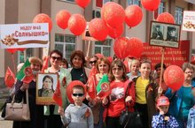 9 мая сотрудники детского сада приняли участие в шествии "Цвети, Парад!" наряду с организациями посёлка Васильево.