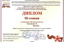 Матвей К. занял 3 место в республиканском творческом конкурсе "Помним! Чтим! Гордимся!" в номинации "Вспомним былое" г.Менделеевск