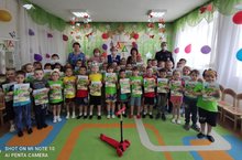 31 мая 2021 года к "Дню защиты детей" прошло мероприятие по ПДДТТ "Пешеходом быть - наука! ". Ребята старшей группы №3 показали музыкально-театрализованное представление "Светофор-наш друг и хозяин дорог" для возрастных групп и гостей детского сада: Старший госинспектор ДПС ОГИБДД Отдела МВД России по Зеленодольскому району - Миронов Дмитрий Александрович и Начальник Зеленодольского отделения Отдела профилактики ТУ в г. Казани ГБУ "БДД" -Шакирова Зульфия Вазыховна. Ребята группы √5 провели конкурс рисунков по теме "Транспорт", воспитатели группы №1 вручили памятки родителям "Юный велосипедист" и др. В совместной беседе закрепили знания по знакам, показали эрудицию, творческий талант. Миронов Д. А. и Шакирова З. В. вручили всем ребятам познавательные книги по ПДД, сувениры, Самокат! Соблюдай правила, сохрани свою жизнь!