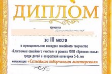 Воспитанники МБДОУ №40 "Солнышко"- София Г., Анна Б., Костя Т. приняли участие в муниципальном конкурсе семейного творчества