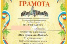 Победитель в номинации "А нам нужна одна Победа!" VI муниципального творческого конкурса чтецов "Весна Победы - 2018" 07.05.2018