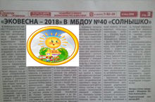 Публикация статьи "ЭКОвесна - 2018" в МБДОУ №40 "Солнышко" 14.05.2018