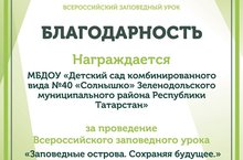 МБДОУ №40 "Солнышко" отмечено благодарностью за проведение Всероссийского заповедного урока "Заповедные острова. Сохраняя будущее"